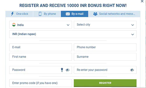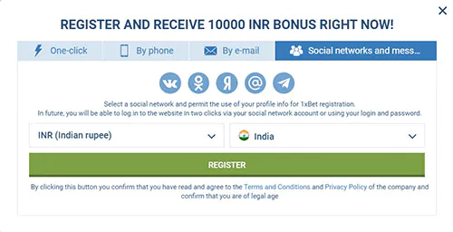 让我们看看在1xBet平台上创建个人账户的分步过程。首先,您需要找到注册按钮,它位于1xbet官方网站主页的右上角。您可以使用四种可用的注册方式之一: